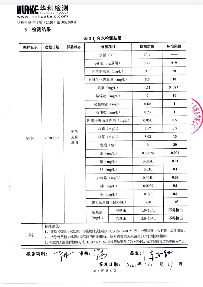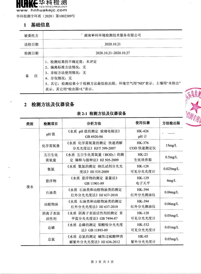 湖南怀德检测技术有限公司 2024年12月 污水出水检测报告