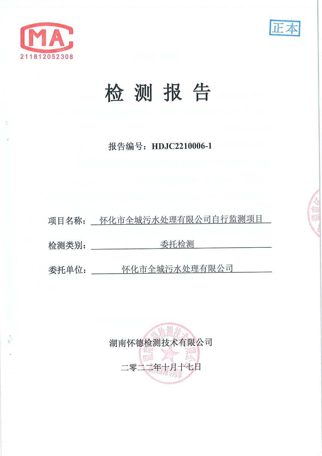 湖南怀德检测技术有限公司 2024年12月 污水出水检测报告